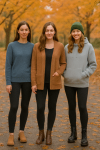Choosing the right pair involves matching the feel and look of your leggings with the occasion. It’s about expressing personal style while balancing comfort and practicality through your favorite fall activities.