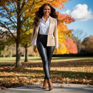 Outerwear can either make or break a fall ensemble. A stylish coat or jacket works wonders when paired with leggings. Denim jackets add a touch of youthful flair, perfect for a daytime date or coffee run. On chillier days, a well-fitting trench coat or a classic wool coat doesn’t just keep the cold at bay but also elevates the overall aesthetic.
