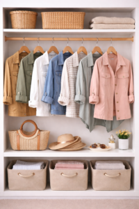 When it comes to storage, don’t just shove them in the deepest, darkest corner of your closet. Consider hanging your jackets to keep them free from wrinkles and creases that steal the show. For those swanky jackets you pull out on special occasions, a garment bag can keep dust away and protect the fabric.