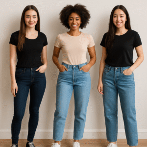 Taking your body shape into account is crucial when selecting jeans. Apple shapes might opt for high-rise jeans to define the waist, while pear shapes could explore bootcut styles to balance proportions. For athletic frames, boyfriend jeans add a relaxed feel and are perfect for a casual vibe. Petite women often benefit from cropped styles or ankle-length cuts that don’t require tailoring.
